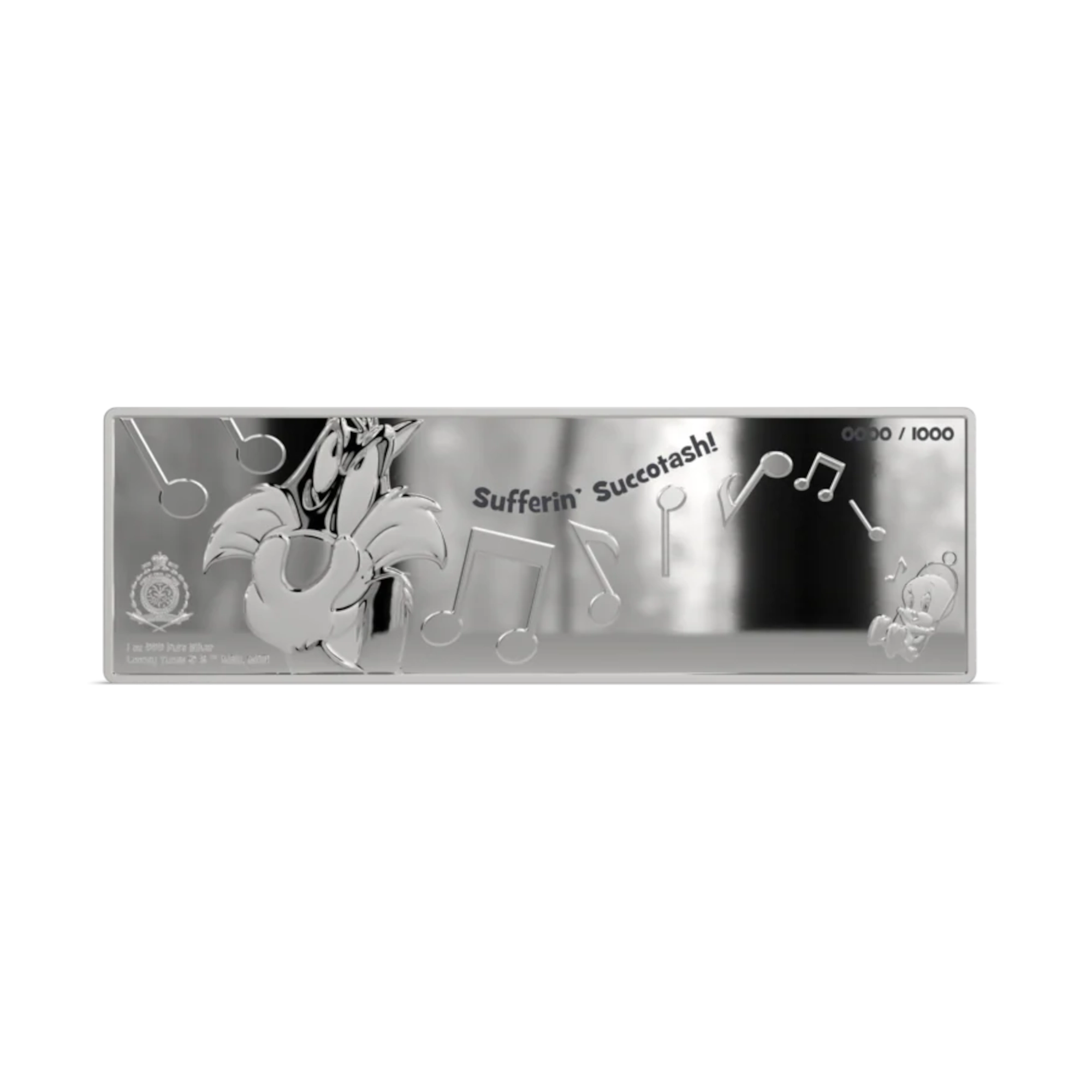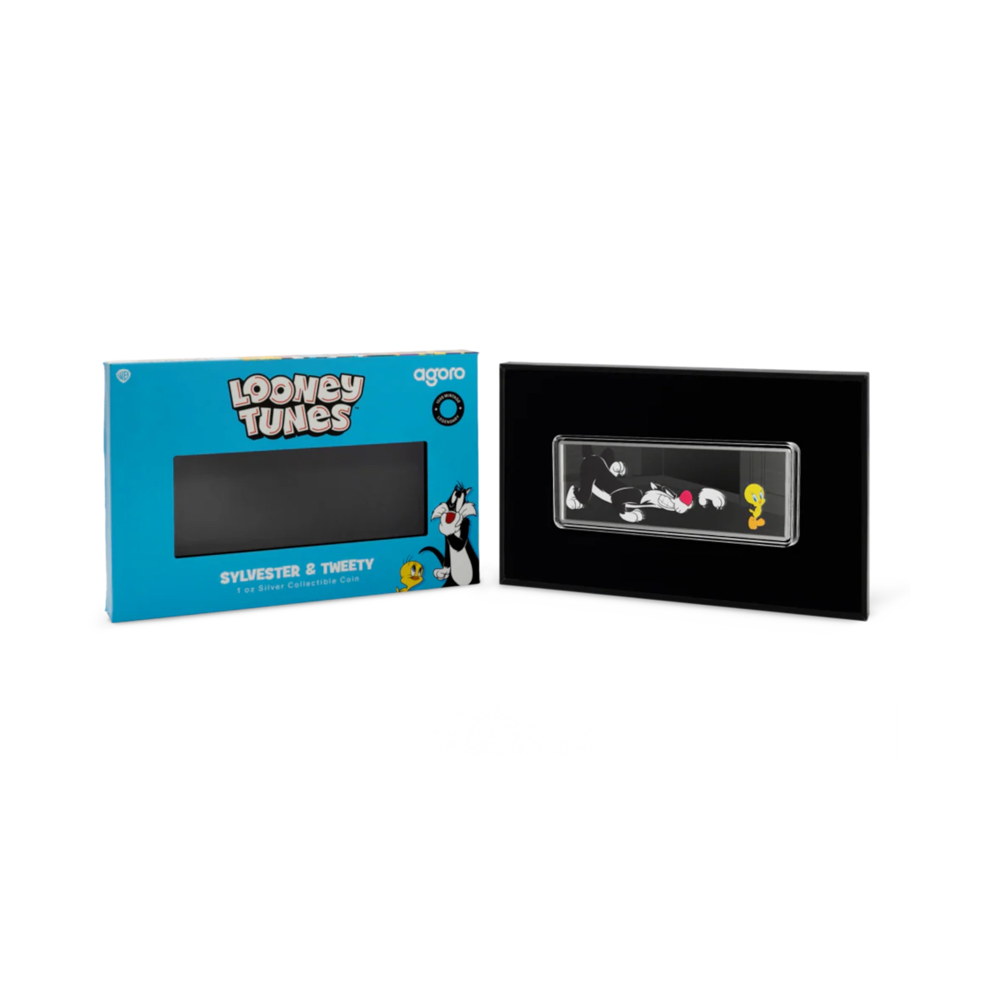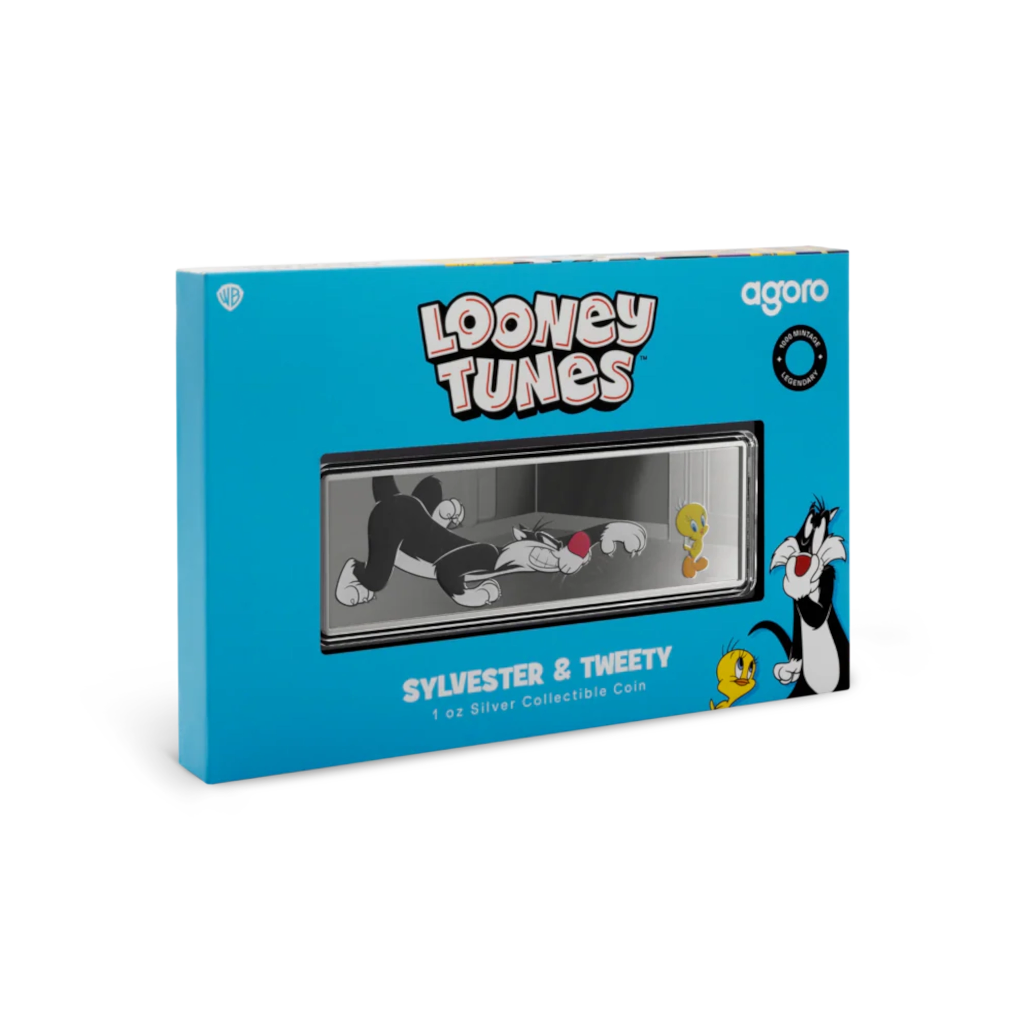 Prueba en color de 1 oz de plata .999. Reverso: Piolín posa tranquilo mientras Silvestre acecha agazapado, a todo color sobre fondo grabado. Anverso: frase de Silvestre «¡Sufferin’ succotash!» grabada (huevo de pascua oculto en piezas seleccionadas). Licencia de Niue, valor nominal de 2 $. Segundo lanzamiento de la serie Double Trouble de Agoro. Emparejados por primera vez en Tweetie Pie (1947), el primer corto animado de Warner Bros. ganador de un Oscar. Silvestre apareció en 103 dibujos animados de la Edad de Oro. Edición limitada de 1.000 piezas en todo el mundo, numeradas individualmente. Embalaje oficial, Certificado de Autenticidad incluido.