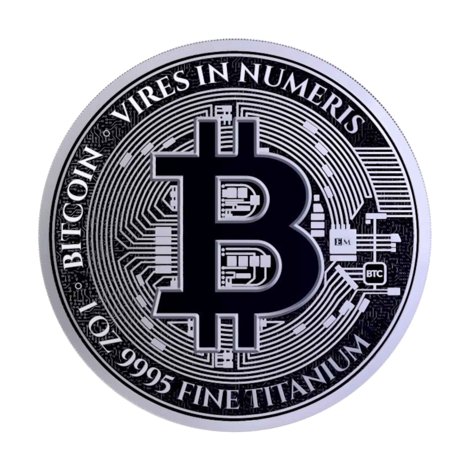 Titanium bullion round commemorating Bitcoin, the world’s first cryptocurrency introduced in 2009. Features the iconic Bitcoin logo with the stylized “B” symbol prominently displayed. Struck in pure titanium with brilliant uncirculated finish, offering cryptocurrency enthusiasts a physical representation of digital currency. The reverse typically displays blockchain-inspired network imagery or mining symbolism. Lightweight titanium construction provides durability and distinctive metallic appearance. An accessible alternative metal investment piece bridging traditional bullion collecting with modern digital currency themes, appealing to both precious metal stackers and crypto advocates.