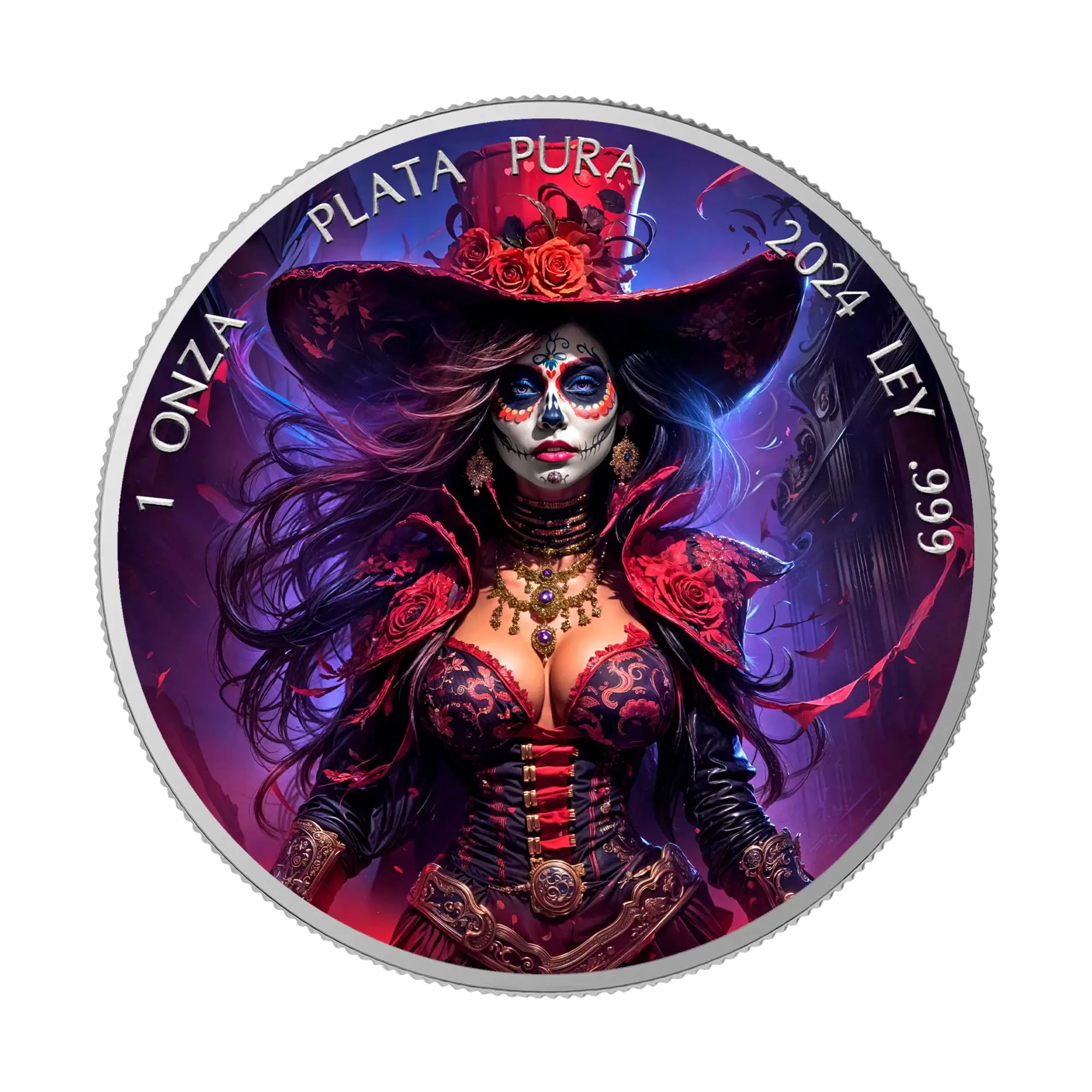 Burlesque Día de los Muertos 2024 Silver Coin 1 oz Mexico Colored