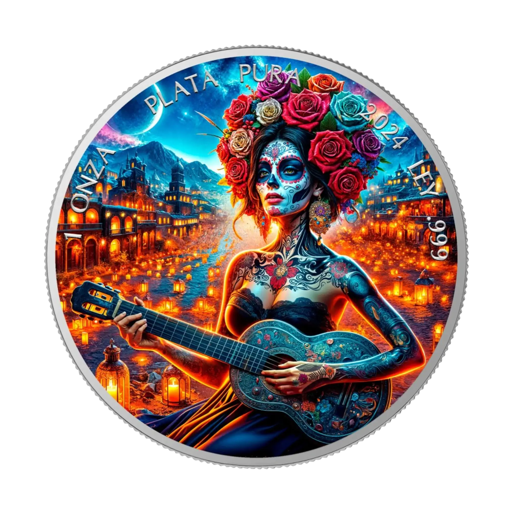 Guitarist Día de los Muertos 2024 Silver Coin 1 oz Mexico Colored