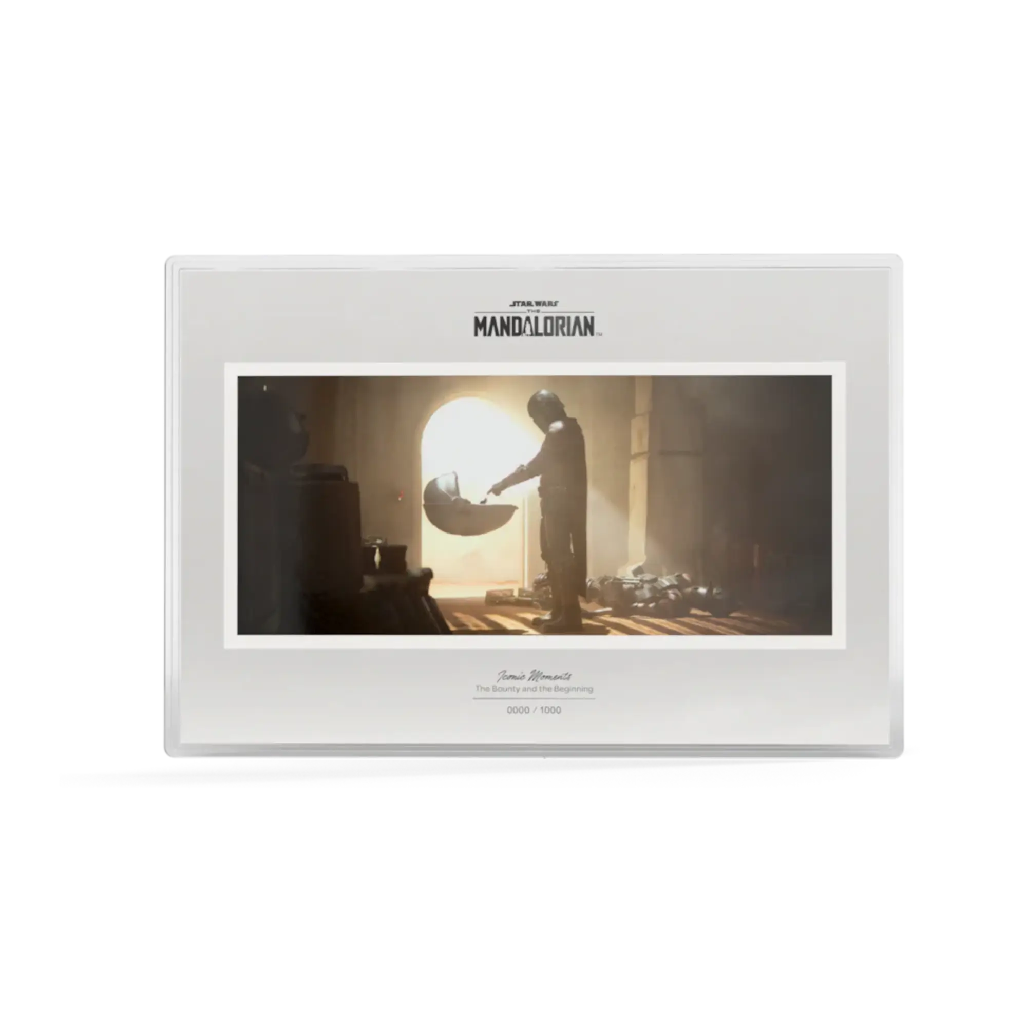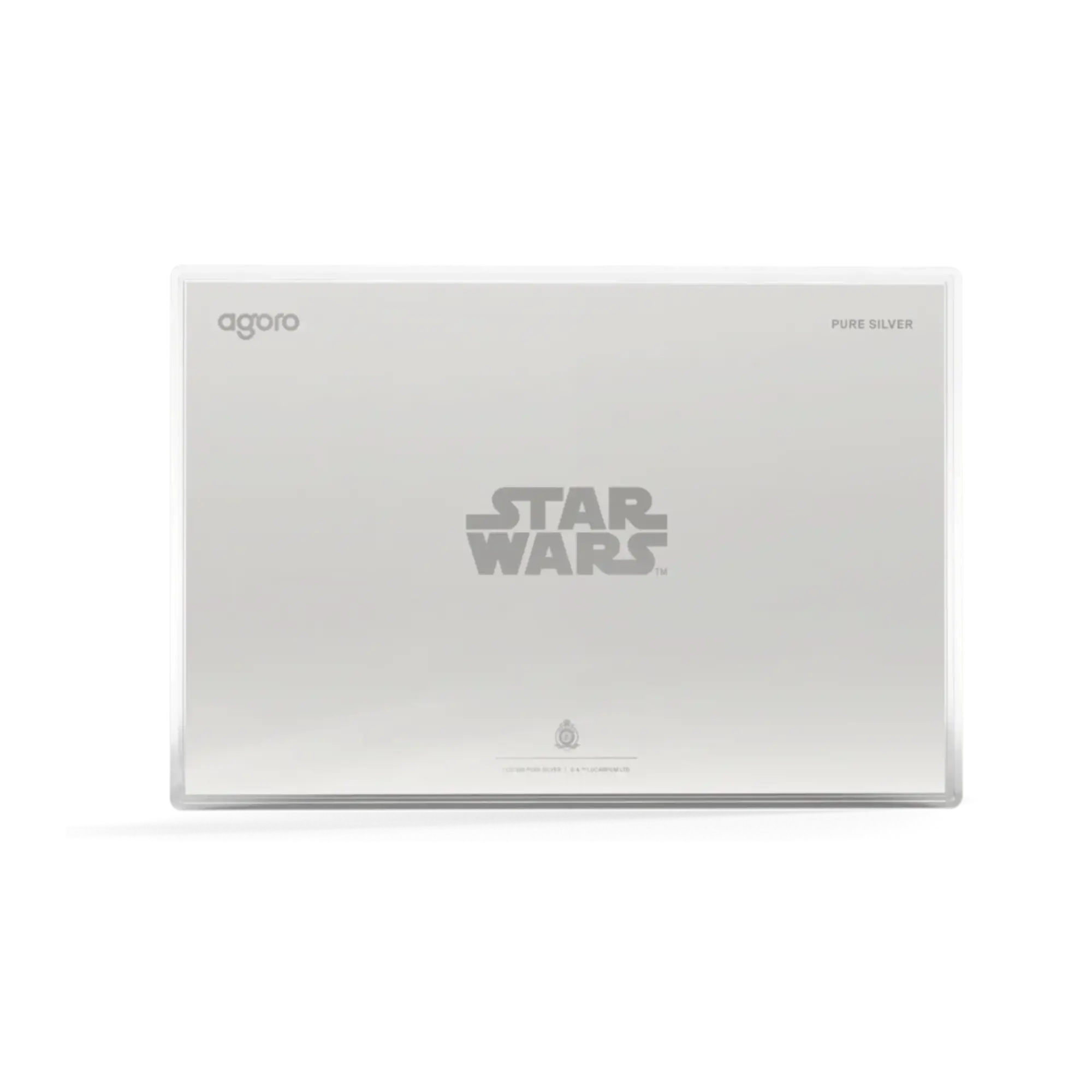 irst release in Agoro’s Star Wars Legends of Mandalore series. Contains 1 troy oz .999 fine silver in landscape poster-style foil measuring 262mm x 175mm. Obverse features full-color proof design capturing the Mandalorian and Grogu’s first encounter with polished silver border, individually numbered out of 1,000. Reverse displays light-frost finish with mirror-finish Star Wars logo. Legal tender $2 NZD backed by Public Seal of Niue. Display packaging with viewing window. Officially licensed by Lucasfilm.