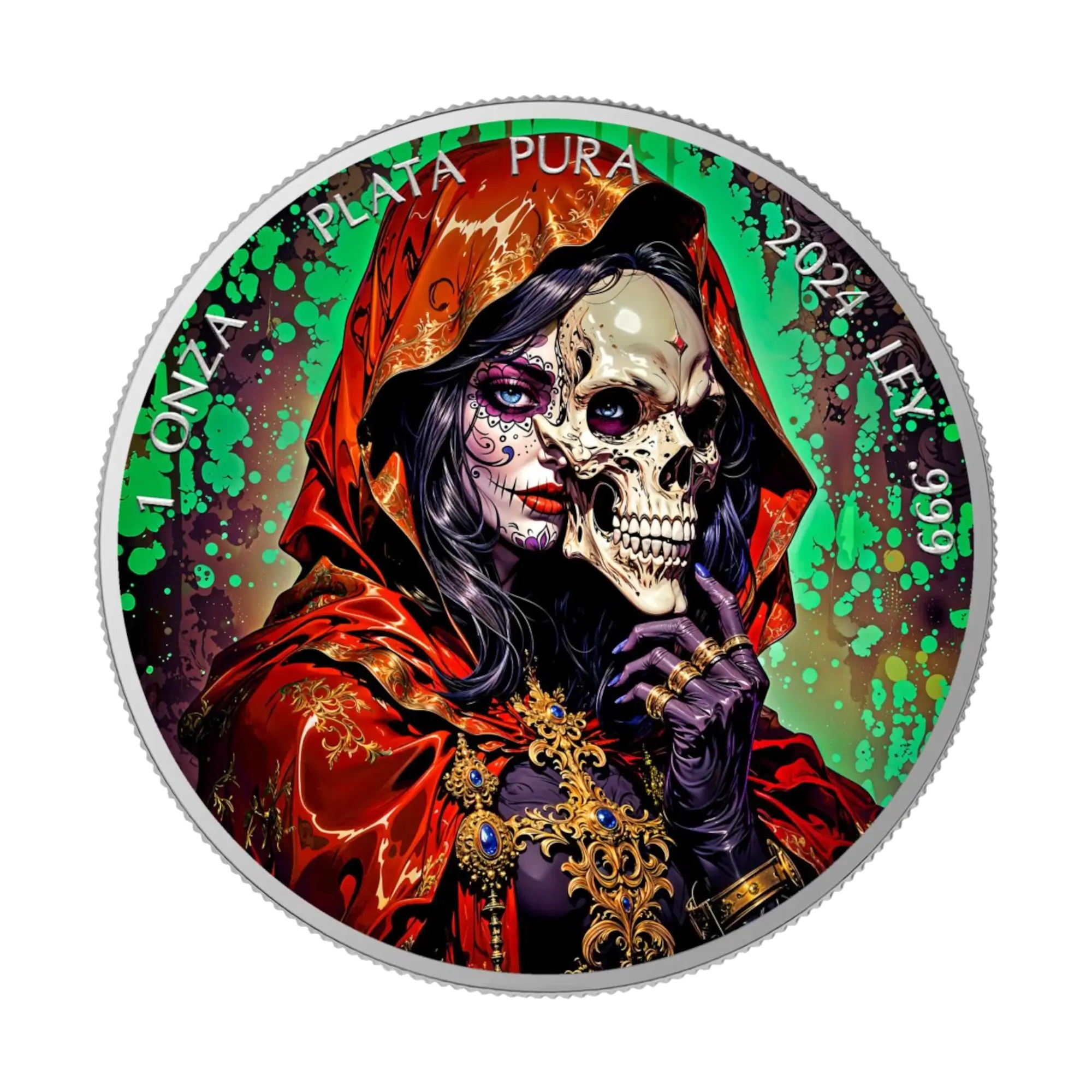 Santa Muerte Día de los Muertos 2024 Silver Coin 1 oz Mexico Colored