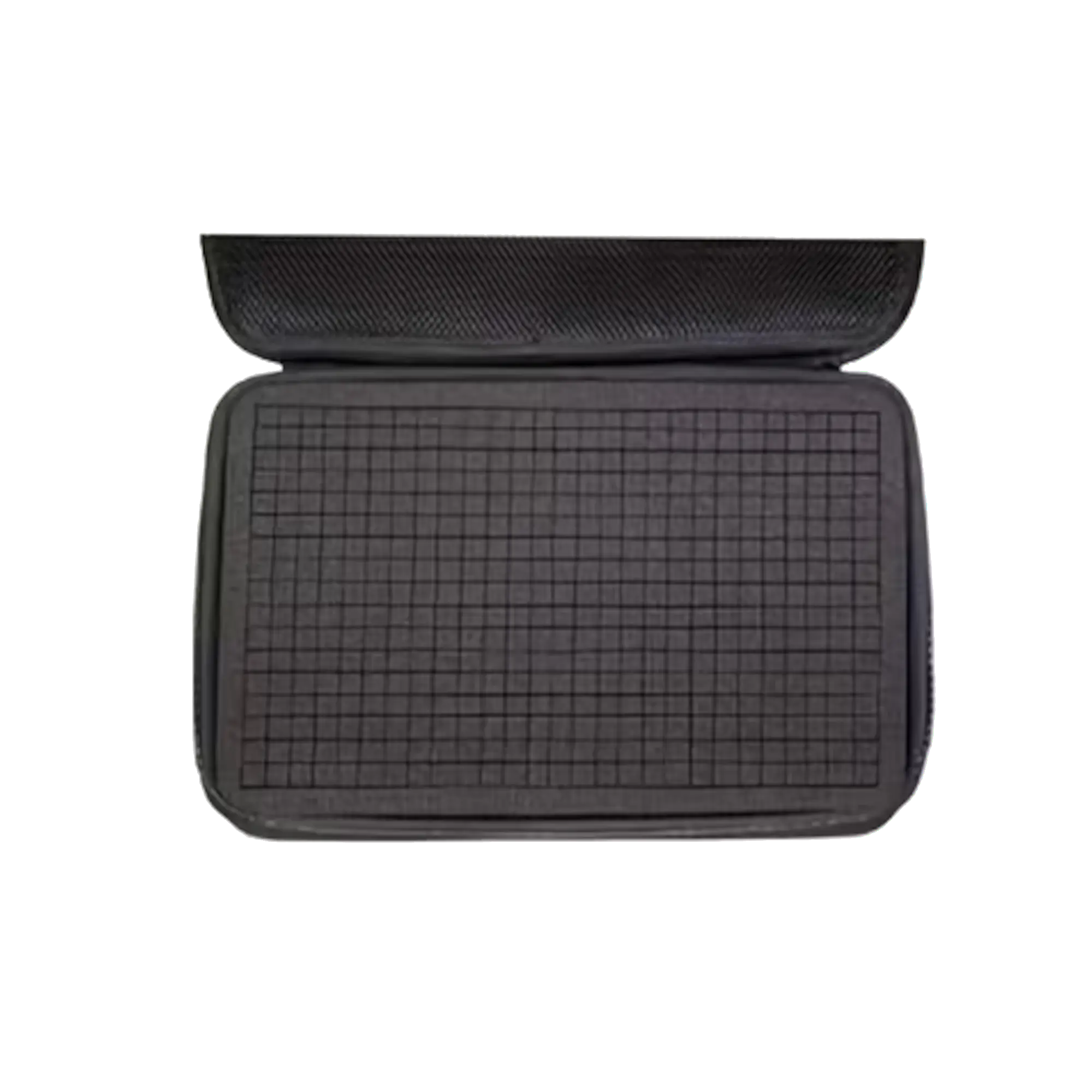 Semi-rigid case measuring 20x15x6.5 cm designed for storing and transporting collectible coins or small bullion bars. The black case features a high-density foam interior with pre-cut segments that can be easily removed and shaped by hand to fit coins, capsules, or small bars. The rigid outer shell provides protection, while the foam interior keeps items secure and organized, preventing movement during storage or transport, ensuring collectibles remain safe and well-maintained.