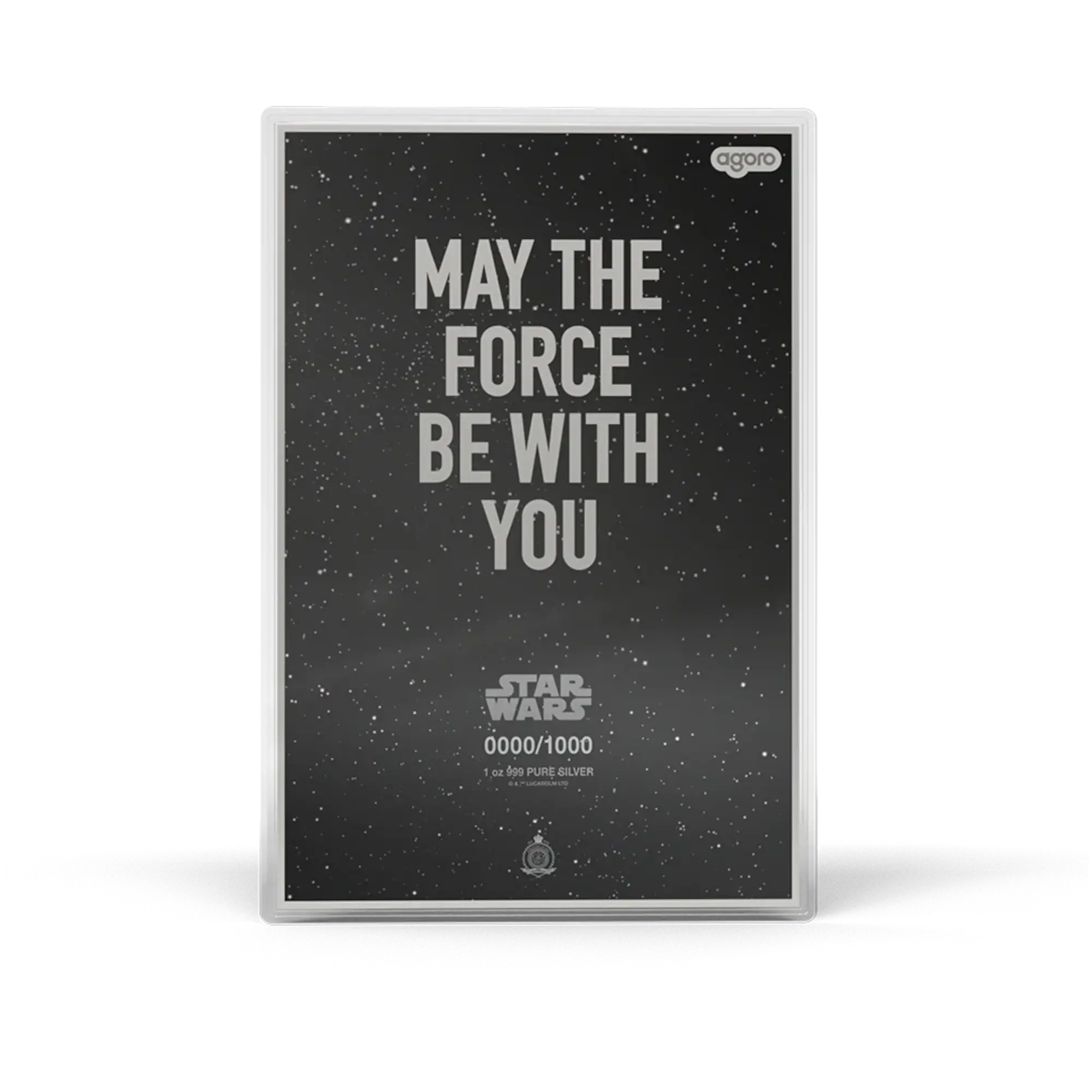 Second release in Star Wars Original Trilogy Poster series capturing the legendary 1980 film. Struck in 1 oz .999 pure silver with proof finish featuring alternate poster artwork in full vivid color enhanced with semi-transparent detailing, Darth Vader and Emperor Palpatine looming large with Empire star ships against mirror-finish galactic backdrop with frosted constellations. The obverse displays Public Seal of Niue, Star Wars logo, unique serial number, and “May the Force be with you” phrase in heavy frosted finish. Limited mintage of 1,000 foils worldwide. Presented in officially licensed Star Wars packaging with display window and Mark of Authenticity.