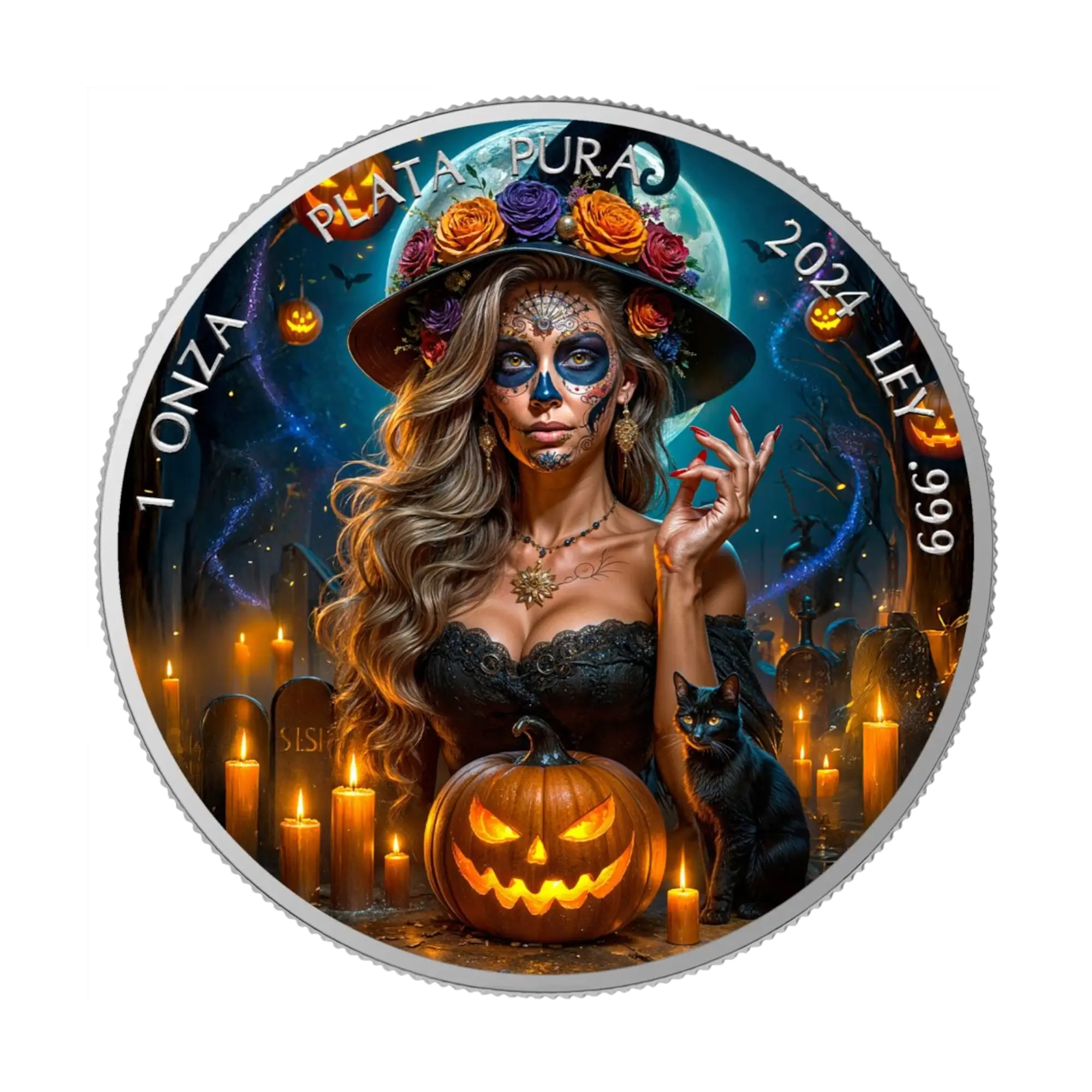 The Witch Día de los Muertos 2024 Silver Coin 1 oz Mexico Colored