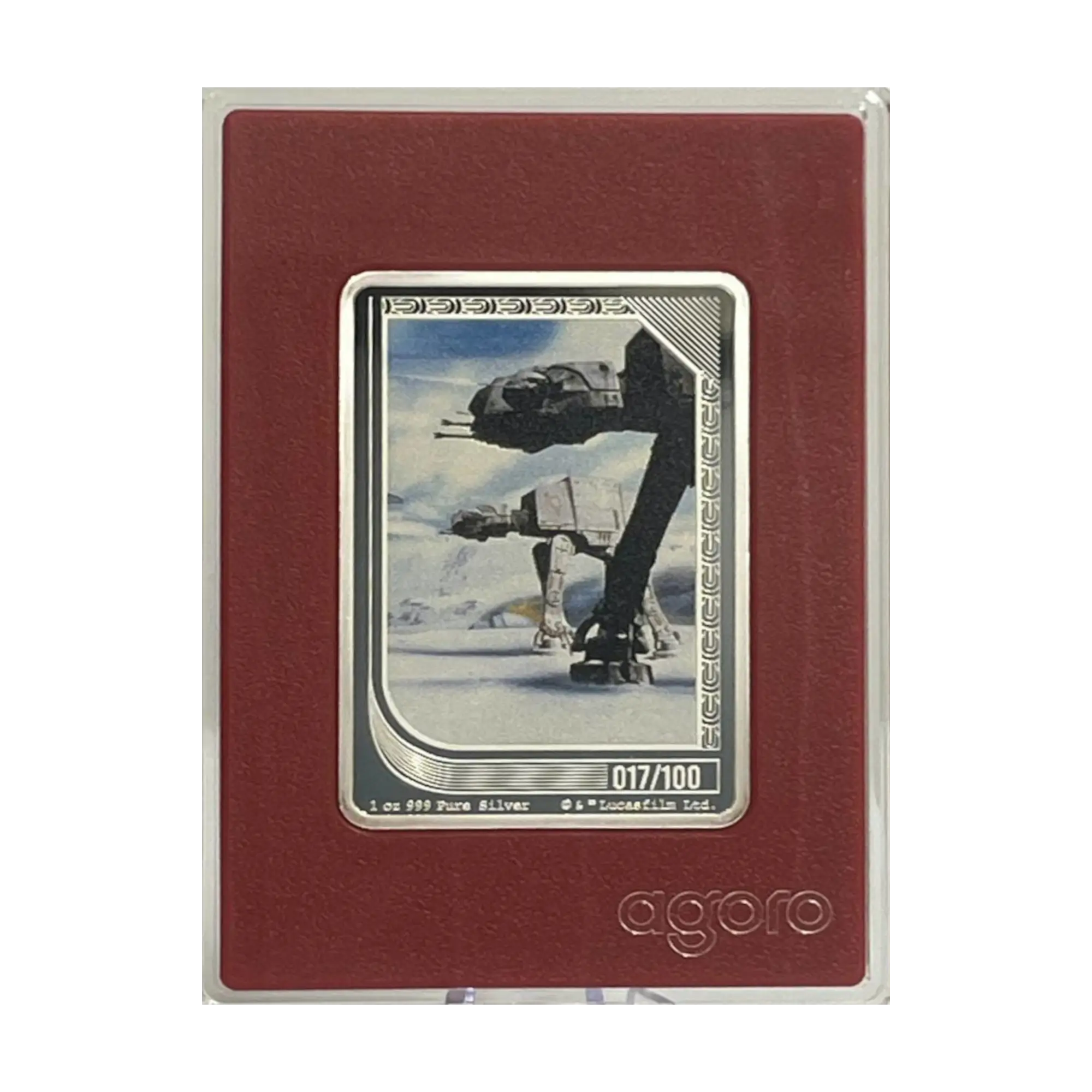 Part of the Star Wars The Original Trilogy Trading Coins series by Agoro, this 1 oz silver coin depicts the Battle of Hoth, capturing the iconic snowy conflict from the Original Trilogy. The reverse shows a detailed scene highlighting key elements of the battle and characters in action, while the obverse presents the Niue coat of arms with denomination. The coin comes in a protective capsule and carries its integrated issue number. Ruby Mintage is an ultra-rare edition of only 100 pieces, with this coin being #17 of 100.