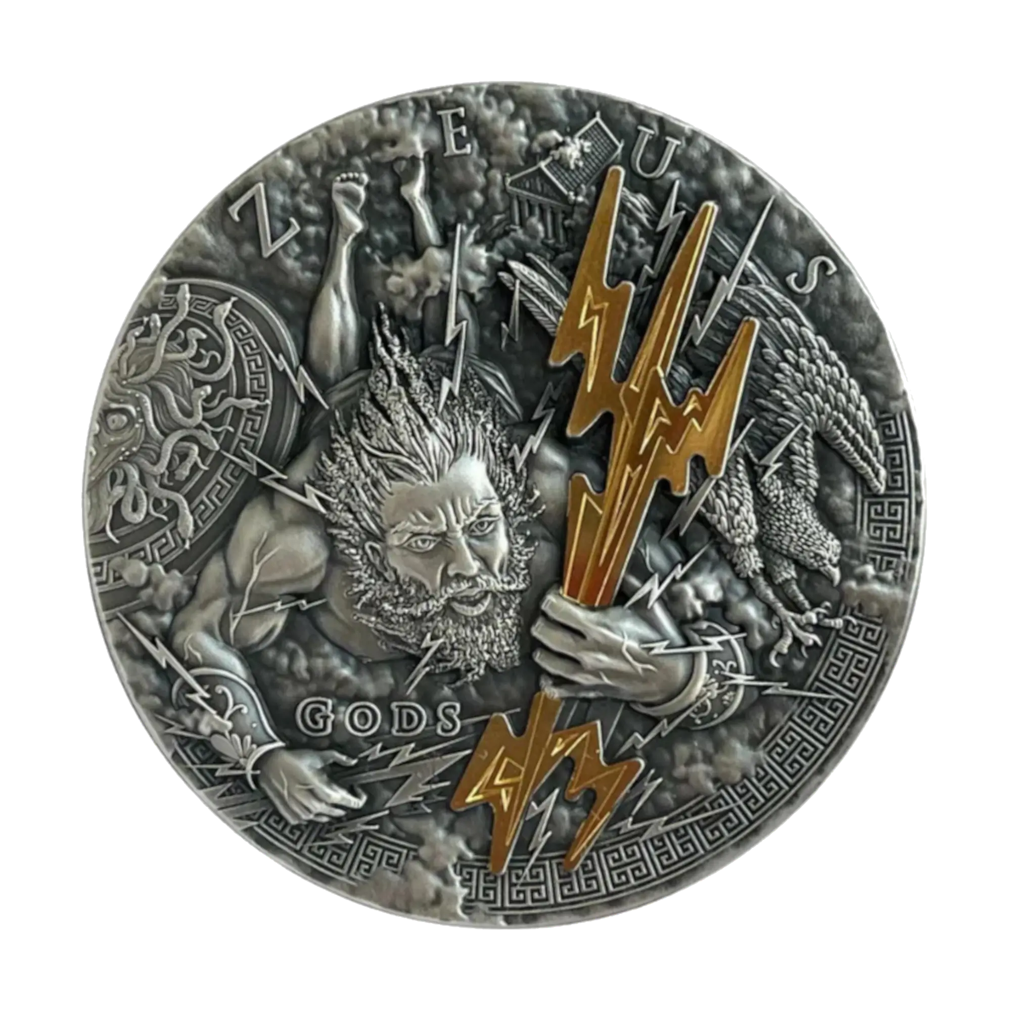 Zeus Gods Series 2021 Silver Coin 2 oz Niue Antique – Selective Gilding